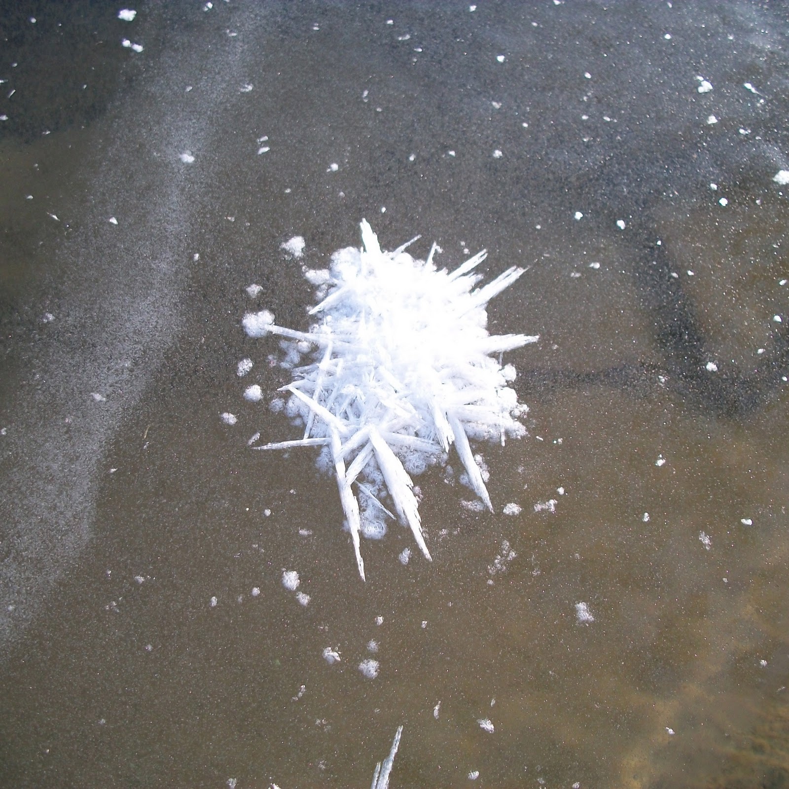Outside, I take a lot of pictures. Outside, we trek over to the neighbor's not-finished-but-filled-with-rainwater pond and throw large rocks at the ice. This amuses small boys endlessly, trust me. It doesn't last quite as long for me, though. So we get in the car and... Outside, we go see what the creek looks like in winter. It's beautiful, but I must have a hypothermia wish.
